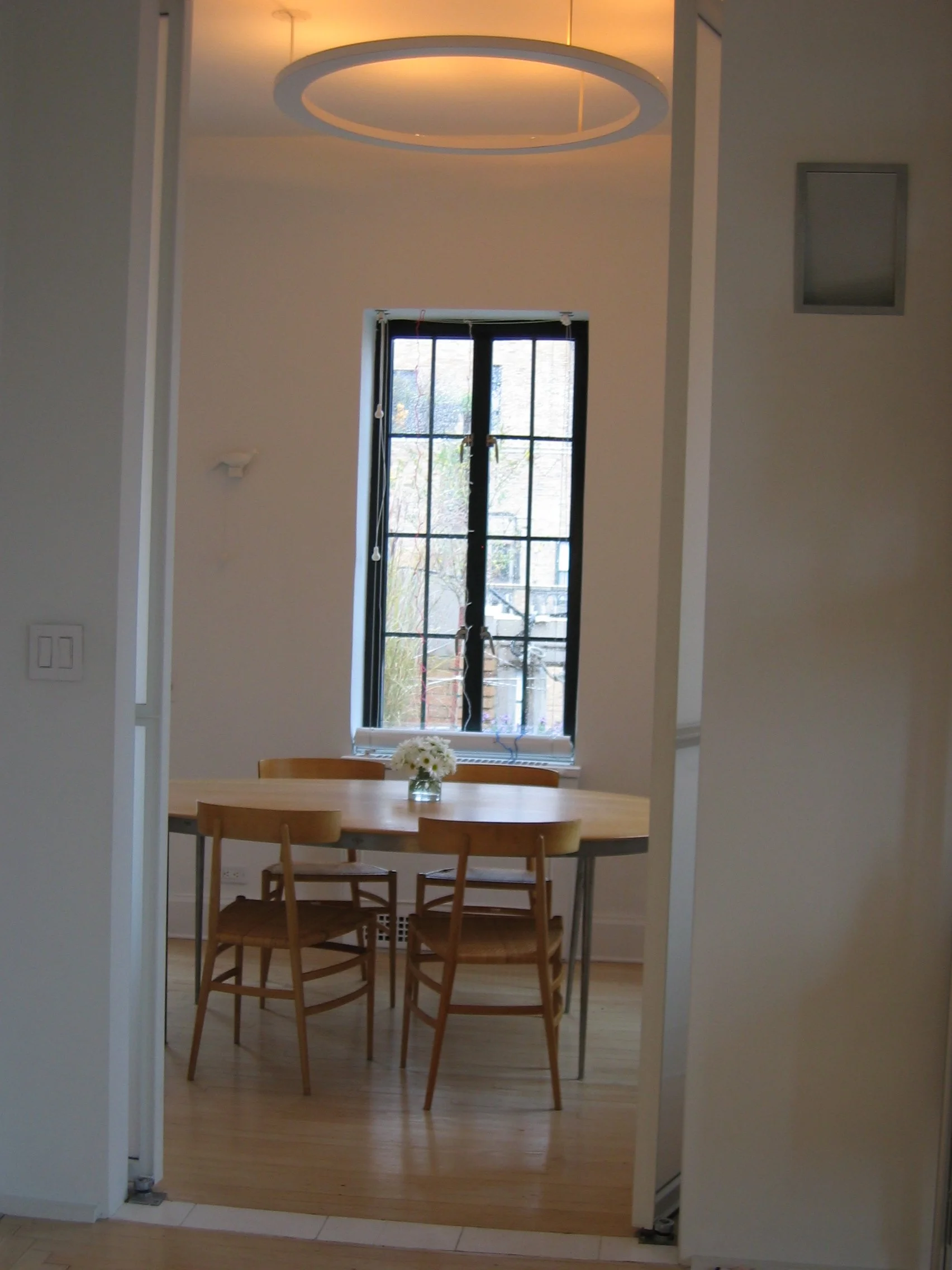 Dining room with existing windows and custom light fixture